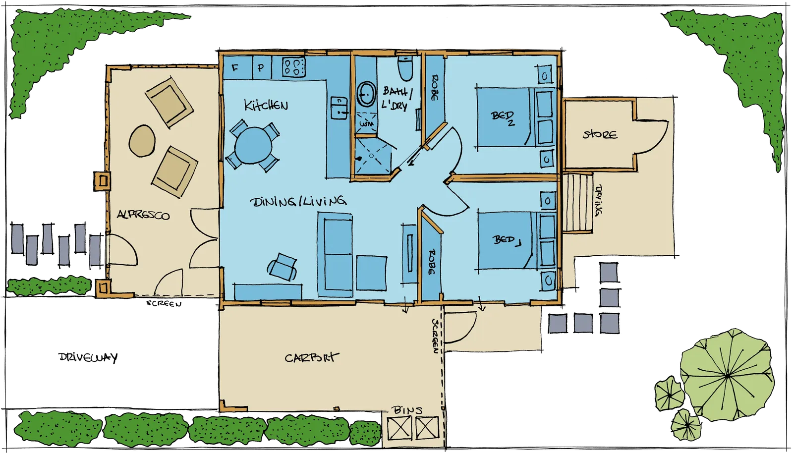 †All-inclusive Providence specifications such as stone bench tops, high-end appliances, insulation, acoustic treatment, solar & battery pack, inverter, air conditioning, Wi-Fi, and complete low maintenance and water friendly landscaping package.