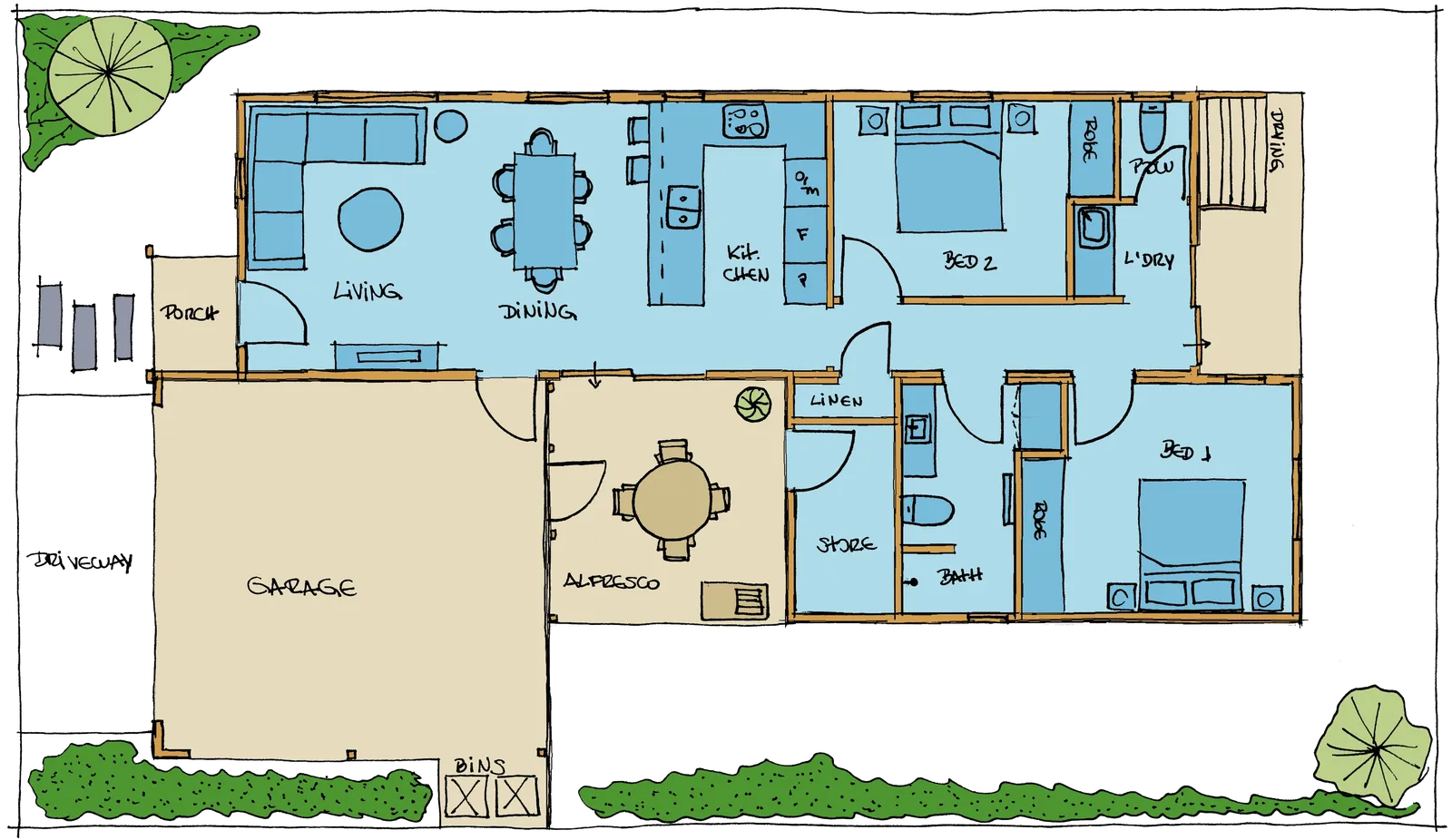 †All-inclusive Providence specifications such as stone bench tops, high-end appliances, insulation, acoustic treatment, solar & battery pack, inverter, air conditioning, Wi-Fi, and complete low maintenance and water friendly landscaping package.
