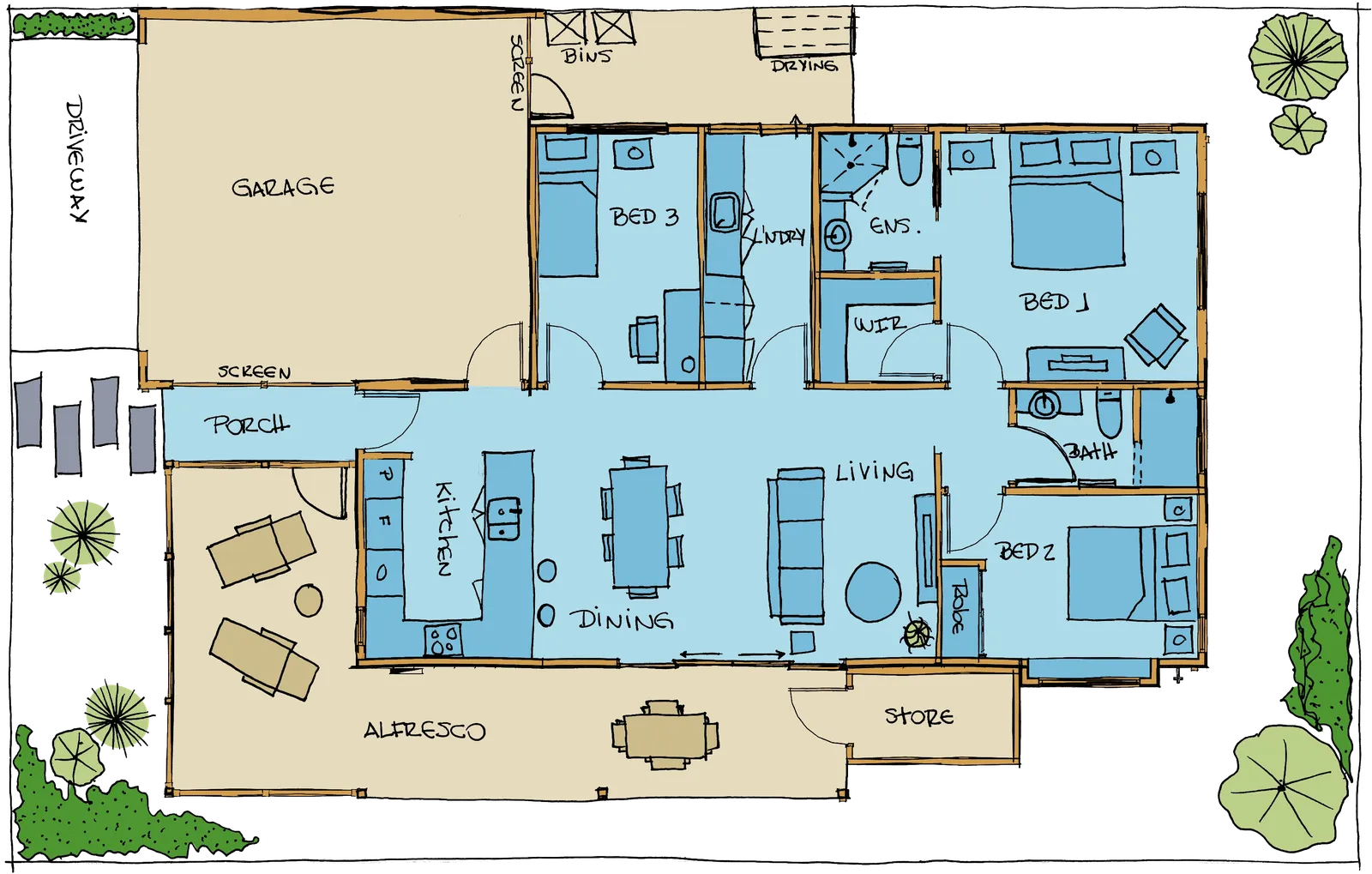 †All-inclusive Providence specifications such as stone bench tops, high-end appliances, insulation, acoustic treatment, solar & battery pack, inverter, air conditioning, Wi-Fi, and complete low maintenance and water friendly landscaping package.