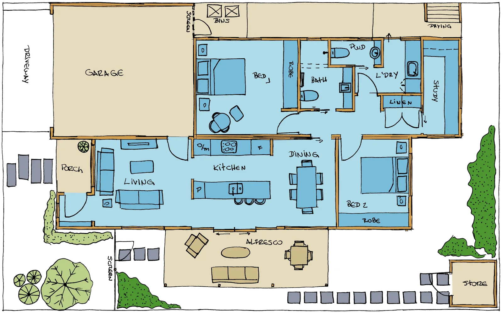 †All-inclusive Providence specifications such as stone bench tops, high-end appliances, insulation, acoustic treatment, solar & battery pack, inverter, air conditioning, Wi-Fi, and complete low maintenance and water friendly landscaping package.