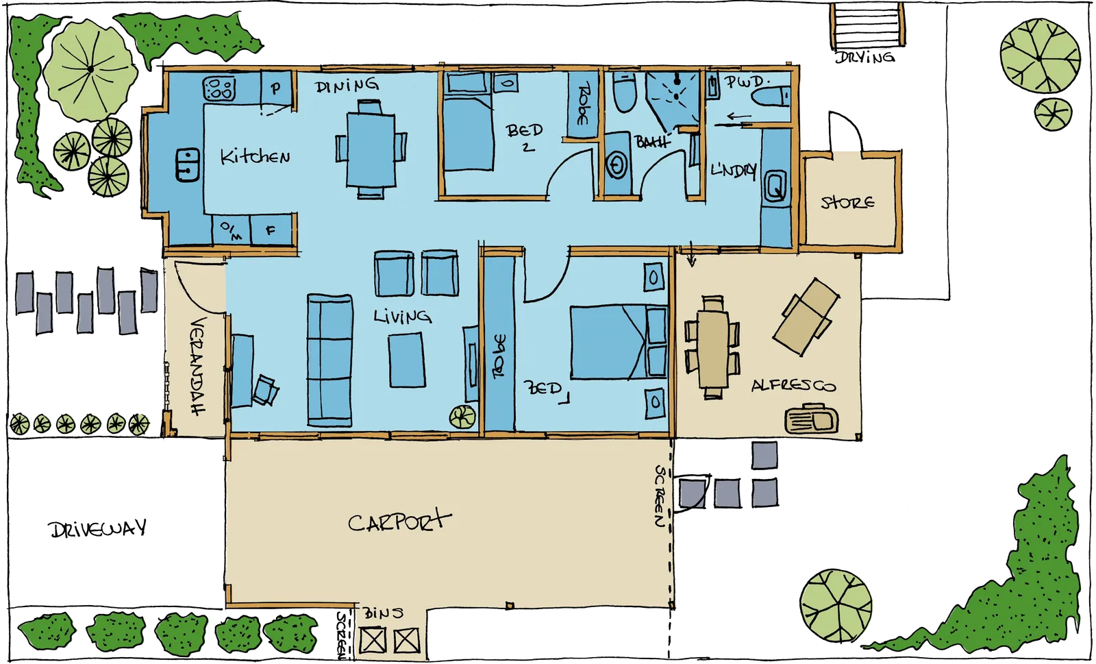 †All-inclusive Providence specifications such as stone bench tops, high-end appliances, insulation, acoustic treatment, solar & battery pack, inverter, air conditioning, Wi-Fi, and complete low maintenance and water friendly landscaping package.